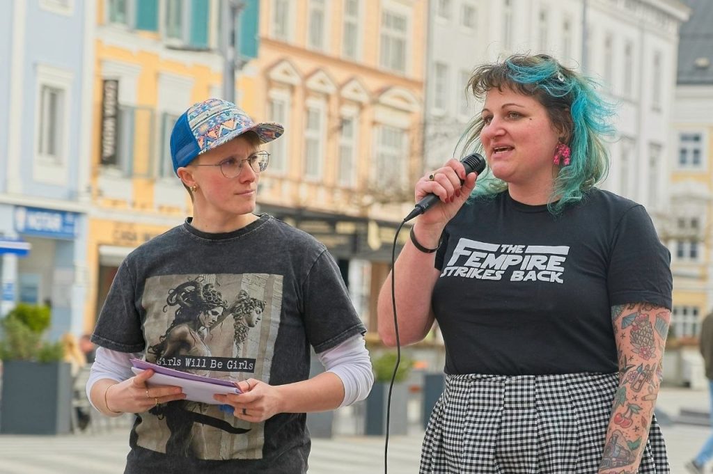 Wir stehen für die Gleichberechtigung und Gleichstellung aller Geschlechter und die Intersektionalität, die uns alle betrifft. Für die Aufbrechung dieses Strukturen kämpfen wir, damit sich etwas verändert.